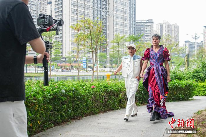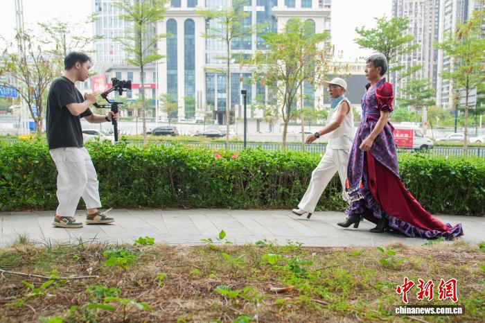 图为扬江诚取宋正启正在北宁下楼间1处小花圃拍摄走秀瞅频。中新社记者 旧冠行 摄